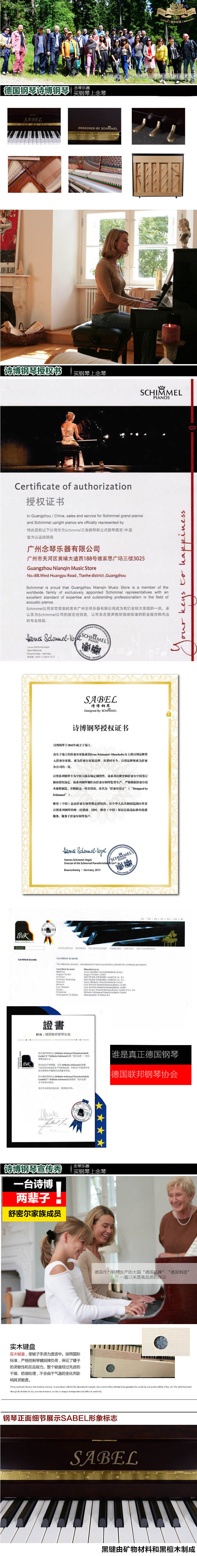 Sabel诗博系列钢琴,严格精选的木材,经常过多道工序的筛选,只有均匀的年轮和笔直的木纹才会是Sabel诗博系列钢琴制作的首选。优质的性价比和严苛的质量检测,才能创造出一流的Sabel诗博系列钢琴。